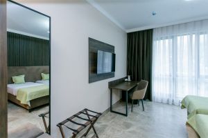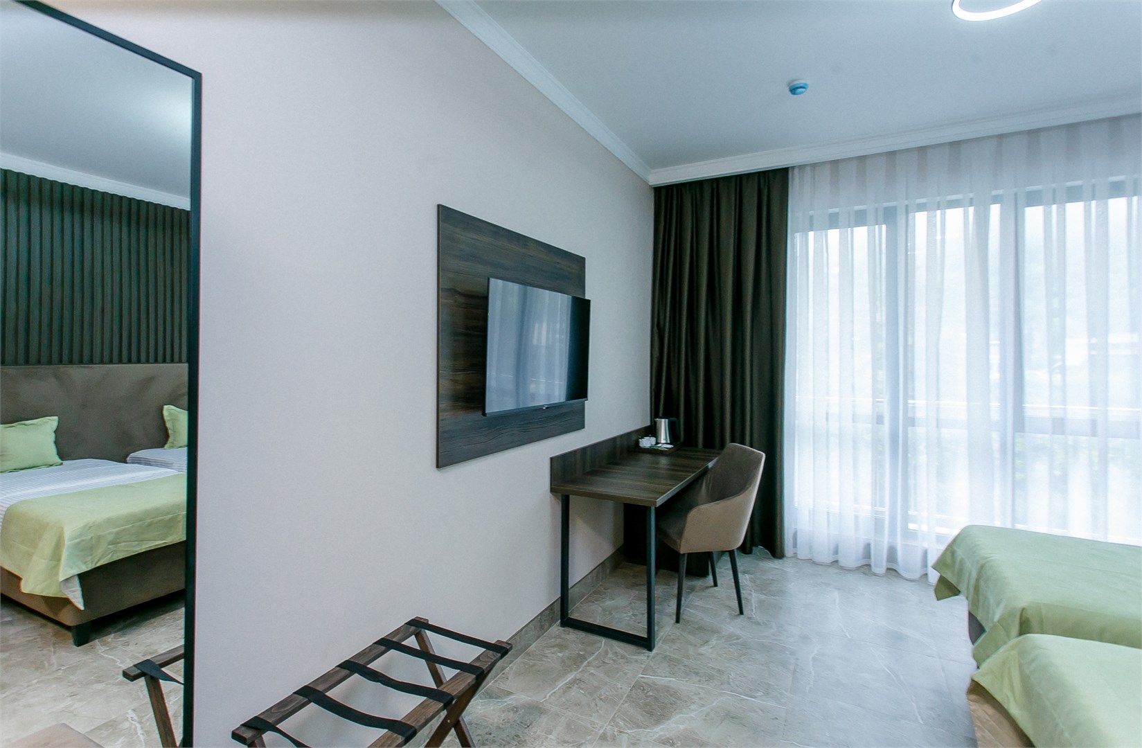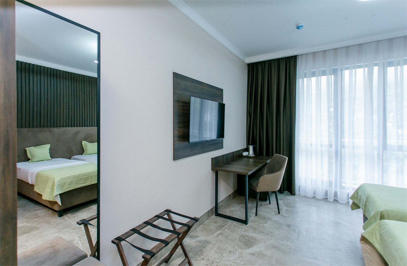 - с/у, душ, кондиционер, обогреватель, ТВ, холодильник, фен, чайная станция