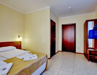 - с/у, телевизор, холодильник, чайник, мягкая мебель, кондиционер, фен, халаты, открытая терраса с пандусом для колясок и мебелью из искусственного ротанга