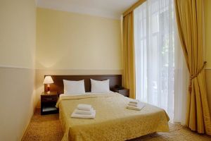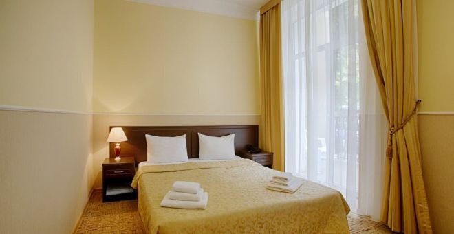Количество комнат 1-комнатныйТип номера СтандартныйДополнительное место еврораскладушкаВид из номера на горыКол-во доп. мест 1 Кол-во основных мест 2 Корпус № 2 Площадь (кв. м) 18 Мебель вешалказеркалокровати односпальные /одна двуспальная кроватьприкроватные тумбочкистолстулшкафОборудование кондиционертелевизорхолодильникСанузел с ваннойтуалетные принадлежностиСервис смена полотенецсмена постельного бельяуборка номера - Количество комнат 1-комнатный