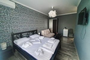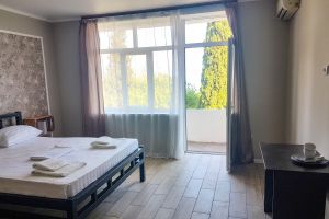- терраса, ванная комната, кондиционер, телевизор, чайник, холодильник, минимальный набор посуды