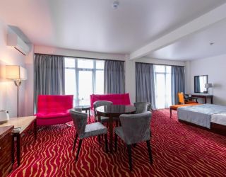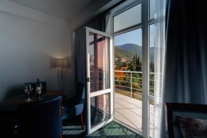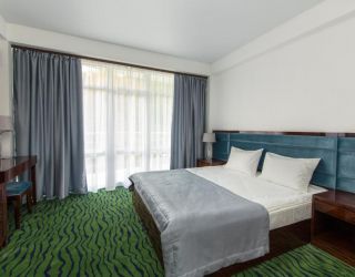 - с/у, ванна, туалетные принадлежности, телевизор, кондиционер, мягкая мебель, халаты, тапочки, чайник, двуспальная кровать, балкон