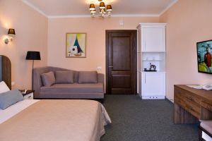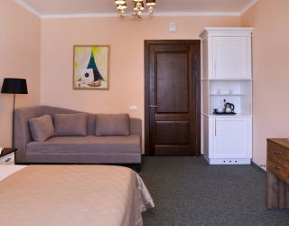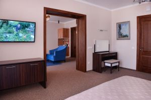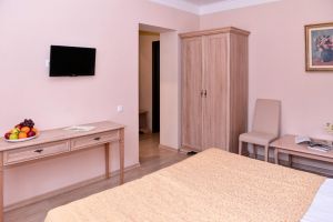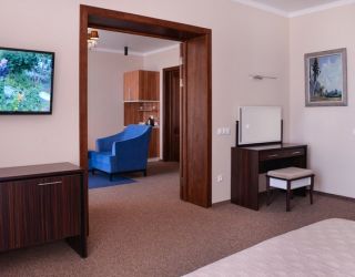 • Двухкомнатный номер выполненный в классическом стиле. Идеально подходит для семейного отдыха. Прекрасный вид с террасы этого номера прибавит приятных впечатлений от прибывания в нашем санатории.