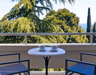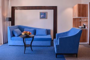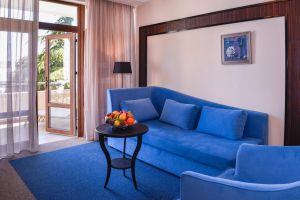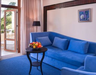 Самый роскошный двухкомнатный номер с просторным балконом в полной мере дает возможность насладиться великолепными видами парка и панорамным видом на море. Элегантный интерьер в стиле модерн, коллекция картин современных художников создают атмосферу уюта и спокойствия, настраивают на превосходный отдых.