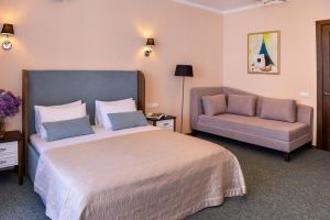 • Просторный двухкомнатный номер повышенной комфортности. Выполнен в спокойной цветовой гамме, с видом на ландшафтный парк. Сделает отдых в нашем санатории незабываемым.