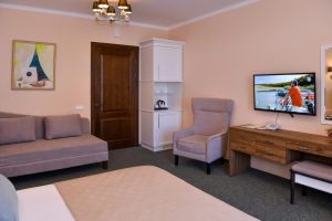 Двухкомнатный номер выполненный в классическом стиле. Идеально подходит для семейного отдыха. Прекрасный вид с террасы этого номера прибавит приятных впечатлений от прибывания в нашем санатории.