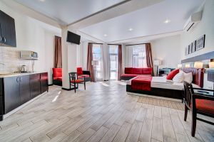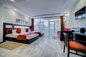 - основное и доп.место размещаются на одной кровати; С/у,душ.кабина,К,сейф,ТВ,мини-холодильник,Б