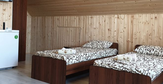 Отдельный вход в номер. По желанию можно выбрать номер с односпальной или двуспальной кроватями. Номер оборудован сплит-системой, холодильником, телевизором, санузлом