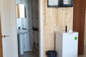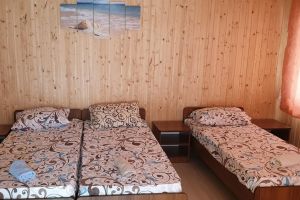 Каждый номер имеет: кровати по кол-ву проживающих, платяной шкаф, стулья, стол, холодильник, ТВ, санузел с душевой, кондиционер, постельное белье и полотенца.