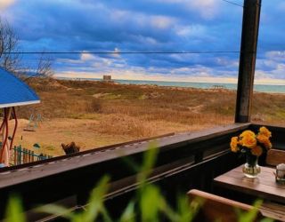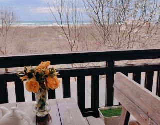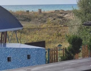 Собственная пляжная территория, оборудованная лежаками, в 100 метрах от нашей базы отдыха.