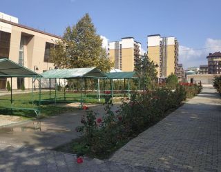4-х этажный корпус с номерами с удобствами (санузел, душ). В номере на 4 - 7 человек кровати, тумбочки, шкафы, балкон, санузел с душем. На этаже гладильная комната, просторные холлы для отдыха.