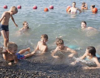 Собственный пляж оборудован теневыми навесами, раздевалками, медицинским и спасательным постами, туалетным павильоном, заграждениями для безопасного купания детей.