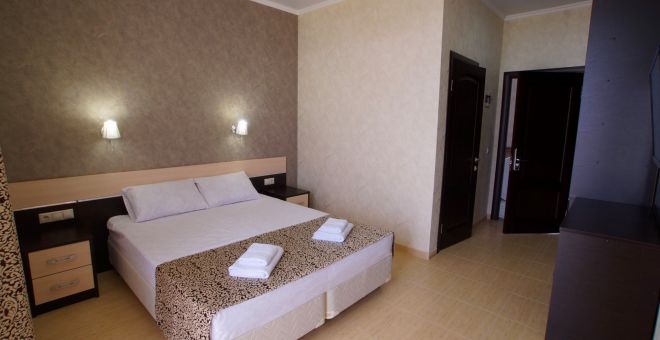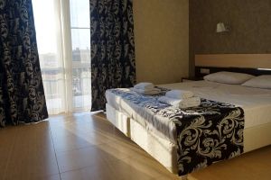 - Двухспальная кровать, кондиционер, шкаф, душ, фен, сейф, туалетные принадлежности, балкон