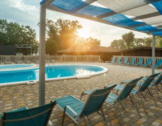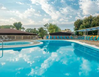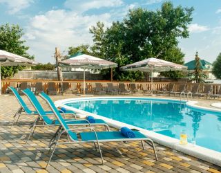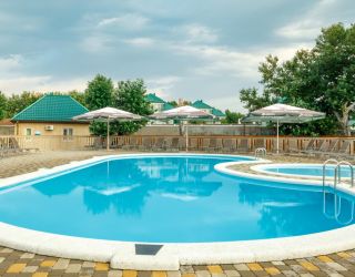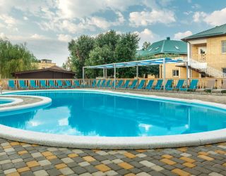 «Изюминкой» отдыха в отельном комплексе может стать посещение бассейна, которое входит в стоимость путевки. Нестандартную форму бассейна дополняет круглый детский водоем. На бортах располагаются лежаки и навесы.