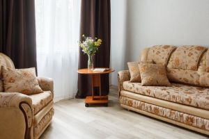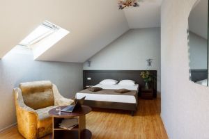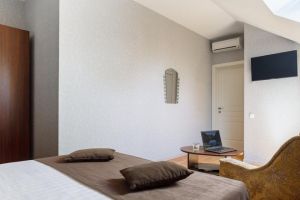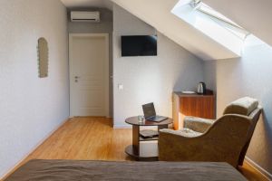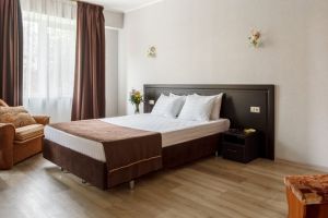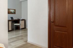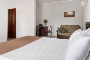 Семейный двухкомнатный номер. Две раздельные спальни: в одной — одна двухместная кровать или две раздельные, в другой диван-кровать и кресло-кровать. Не большая прихожая, санузел с душевой кабиной.
