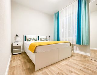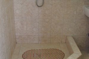 • двухспальная кровать, две односпальные кровати доп. место: диван раскладной ТВ, холодильник, шкаф, столик, кондиционер, сан.узел с душем в пол. Покрытие пола - линолеум
