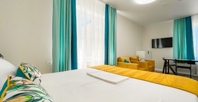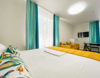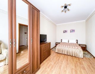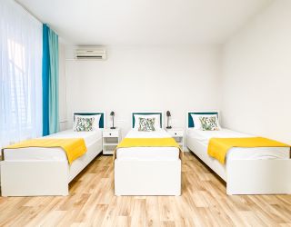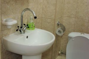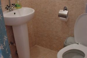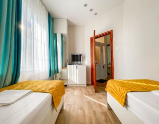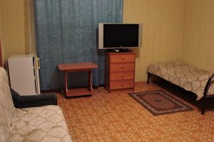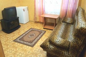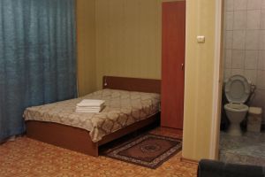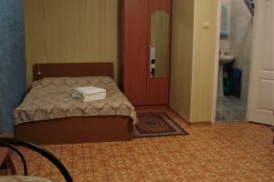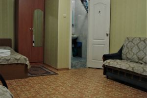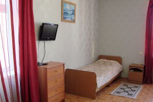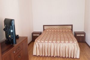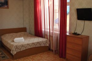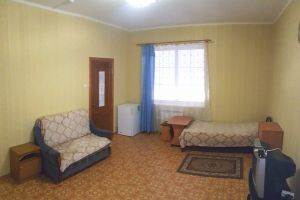 • двухспальная кровать, односпальная кровать доп. место: диван раскладной ТВ, холодильник, шкаф, столик, кондиционер, сан.узел с душем в пол.Покрытие пола - линолеум в 2-х номерах, 1-м номере- ковровое покрытие.