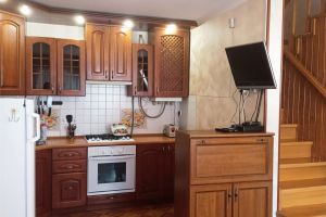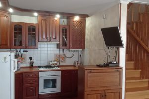 • 1 этаж: прихожая (обувница, шкаф), столовая (стол, стулья, диван раскладной), кухня (газовая плита, мойка, холодильник, кух.гарнитур, посуда)2 этаж: сан.узел (душевая кабина, стиральная машинка, раковина, сан.узел, гигиенический душ, гладильная доска, утюг), спальня (двухспальная кровать, ТВ, кресло-кровать, шкаф), гостиная (два двухспальных дивана, трюмо, столик, шкаф, ТВ). Кондиционер 1 на дом, расположен между этажами на лестнице. Покрытие пола - кафельная плитка и линолеум