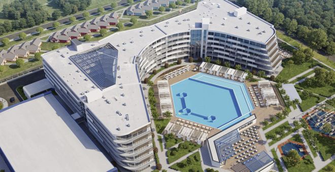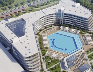 На территории отеля расположено 5 бассейнов различной величины, крытых и открытых, которые предоставляют Вам возможность наслаждаться плаванием круглый год. Основной открытый бассейн площадью 1834 м2 с детской зоной, теневыми навесами и комфортными шезлонгами, расположен рядом с основным корпусом.