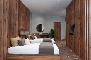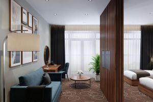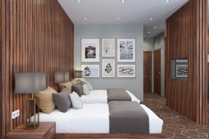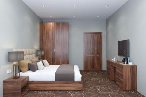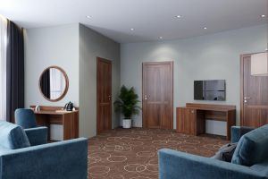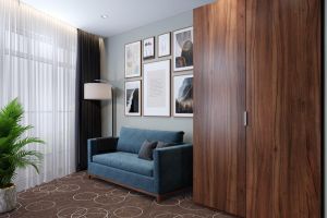 Мебель две односпальные кровати, двуспальная кровать, багажная тумба, вешалки, гардеробная, зеркало, рабочий стол, раскладной диван, стол, стол для переговоров, стул, стулья, шкаф для одежды