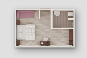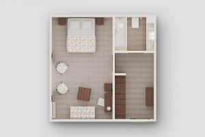 Двухкомнатный номер, расположенный в семейном корпусе, предназначен для размещения четырёх человек. Большая площадь позволит каждому ощущать себя комфортно и спокойно, а простой и уютный интерьер позволит чувствовать себя, как дома.
