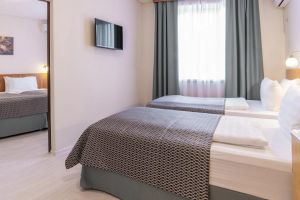 • Просторный и уютный двухкомнатный номер станет отличным выбором для тех, кто едет отдыхать вместе с родными или друзьями. Его площадь позволяет с особым комфортом разместиться семье или компании из 4 человек.