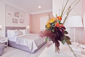 • Красивый и уютный номер предназначен для комфортного размещения четырёх гостей на основных местах и одного - на дополнительном. Имеет гардеробную и небольшой балкон.