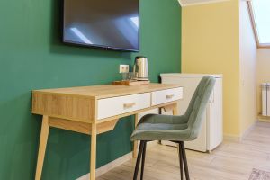 - Двуспальная кровать, Диван-кровать, Кресло-кровать, Телевизор, Телефон, Wi-Fi, Кондиционер, Сушилка для белья, Душ, Полотенца, Косметические принадлежности, Фен, Халат, Тапочки