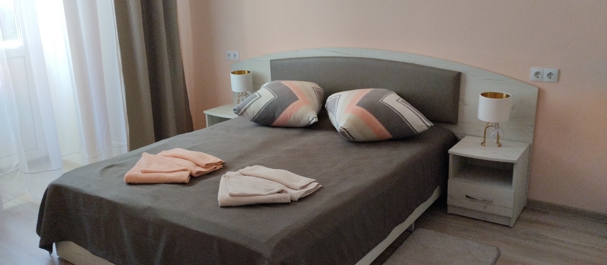 - С/у в каждом номере, оборудованная кухня, гостиная, ТВ, Х, элетроплита, набор посуды