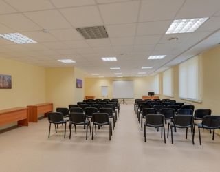 Для проведения совещаний, семинаров, переговоров, курсов, тренингов, круглых столов, презентаций присутствуют технически укомплектованные аудитории. Современный конференц-зал, оборудованный кабинками для синхронного перевода и сурдоперевода, аудио и видео техническим оборудованием.