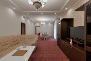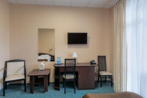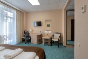 Просторный и светлый двухкомнатный номер – прекрасный вариант для семейного отдыха. Оформление номера сочетает в себе классический стиль и функциональность.