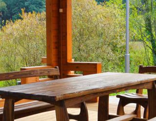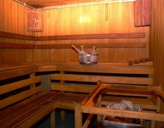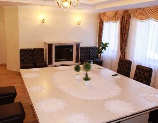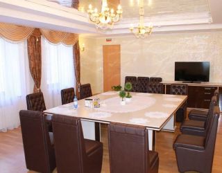 В комнате отдыха установлены стол и 6 стульев, телевизор. Кухня оборудована микроволновкой, холодильником, электрочайником, столовыми приборами, набором посуды, обеденным столом и угловым диваном. Раздельные сан.узел и душевая кабина.