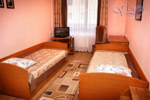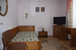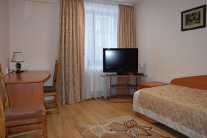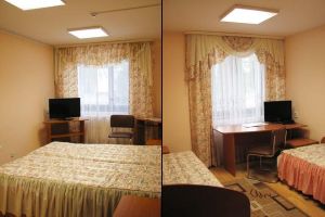 В одноместных номерах находится кровать или тахта (в зависимости от номера) стол, стул, телевизор, холодильник, чайник. Сан.узел, душевая в номере.