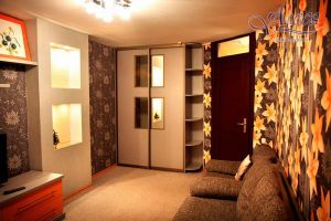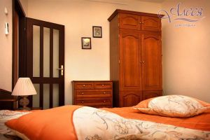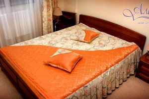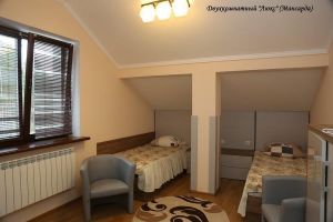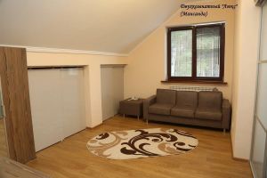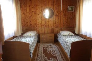 Гостевой дом состоит из 3-х комнат, гостиной, комнаты отдыха и кухни. В двух спальнях расположены по две полуторные кровати, шкаф для одежды, две прикроватные тумбочки. В гостиной расположены два угловых дивана, телевизор и журнальный стол.
