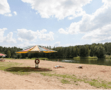 Песчаный пляж санатория на берегу реки и уникальный гидропарк, где Вы можете арендовать катамараны и лодки.
