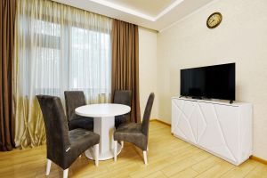- С/у, джакузи, биде, Х, ТВ, гладильная доска, утюг, электрочайник, сейф, фен, набор посуды, Б