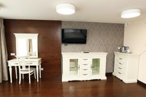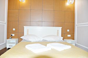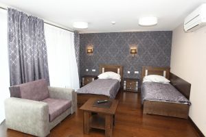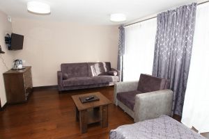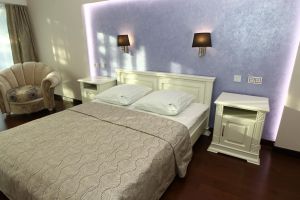 • Номера данной категории расположены во втором корпусе санатория. В номере созданы все условия для уютного семейного размещения. Помимо двуспальной кровати номер укомплектован двухместным раскладным диваном, который позволяет разместить ещё два человека на дополнительных спальных местах. Средняя площадь номера - 45 м кв.