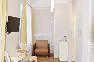• Номера данной категории расположены в обоих корпусах санатория. В номере созданы все условия для уютного одноместного размещения. Средняя площадь номера - 17 м кв. На выбор клиентов представлены номера с балконом и без.