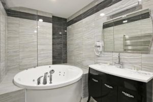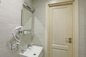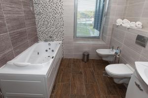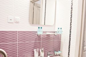 Ванная комната укомплектована: туалетно-косметическими принадлежностями, тапочками и банными халатами,