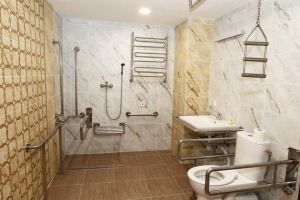 • множеством поручней в самой ванной комнате