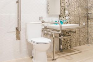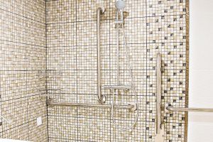 • открытой душевой кабиной, оснащенной специализированными опорными ручками и сиденьем