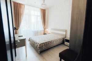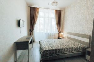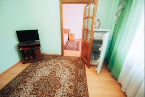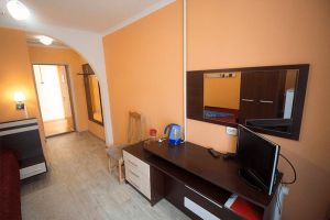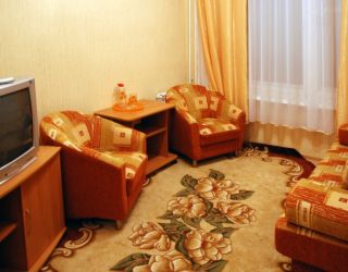 В номере: 2-спальная кровать,1,5-спальные кровати, прикроватные тумбочки, шкаф (в каждой комнате), телевизор (в каждой комнате), холодильник, душ, туалет.