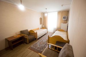 Двухместные двухкомнатные номера расположены в 3 корпусе на 2 этаже, а так же во 2 корпусе на первом и втором этажах. Общая площадь номеров составляет 23-27,7 кв.м. Данная категория подойдет для размещения 2-х человек, а так же для семьи с детьми в общем количестве 4 человека. В данном номере 2 основных места и 2 дополнительных, которые представлены в виде дивана, который раскладывается.