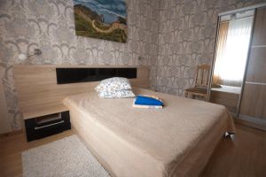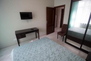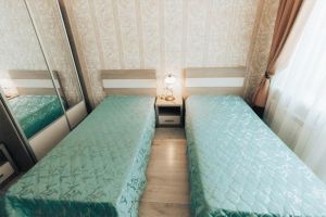 В номере: 2-спальная кровать, прикроватные тумбочки, шкаф (в каждой комнате), телевизор, холодильник, душ, туалет.