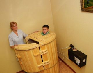 В санатории имеется свой бассейн объемом 115 куб.м. Оборудован гидромассажерами (каскад, пушка, пяточный массаж). Водоподготовка осуществляется методом хлорирования, температура воды поддерживается на уровне-27 – 29⁰С. Также имеется бассейн при бане с холодной водой объемом 10 м3 для проведения контрастных процедур.