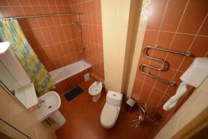 • санузел с ванной, унитазом, биде, раковиной и феном;