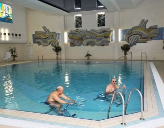 В лечебном корпусе есть собственный крытый бассейн с сауной, вода из артезианской скважины. Пользование бассейном входит в стоимость путевки.