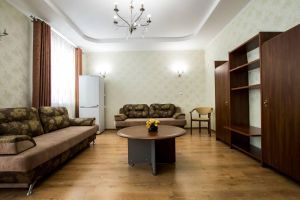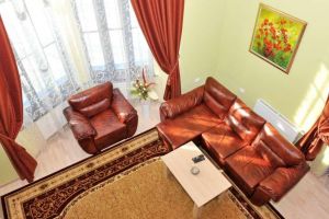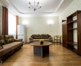 Мебель: 2 односпальные кровати, раскладной диван, 2 прикроватные тумбочки, стол для жилой комнаты, 2 стула полумягкий.
