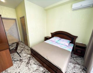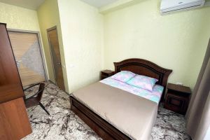- двуспальная кровать, раскладной диван, прикроватные тумбочки, шкаф, стол, стулья, вешалка, зеркало