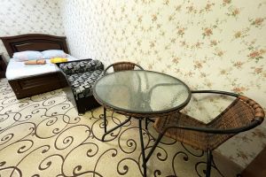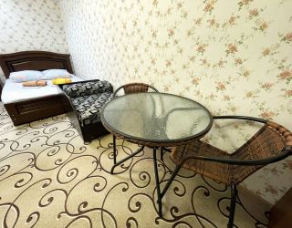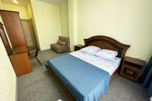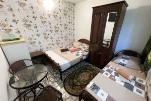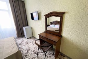 - двуспальная кровать, две односпальные кровати, шкаф, стол, стулья, зеркало