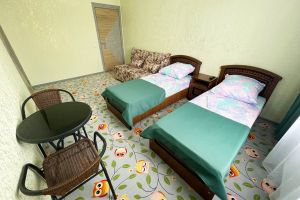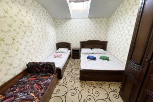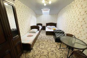- двуспальная кровать, три односпальные кровати, шкаф, стол, стулья, зеркало
